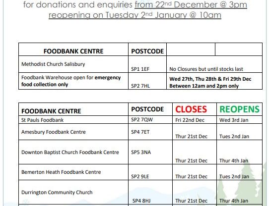 FOODBANK OPENING TIMES OVER FESTIVE SEASON 2023